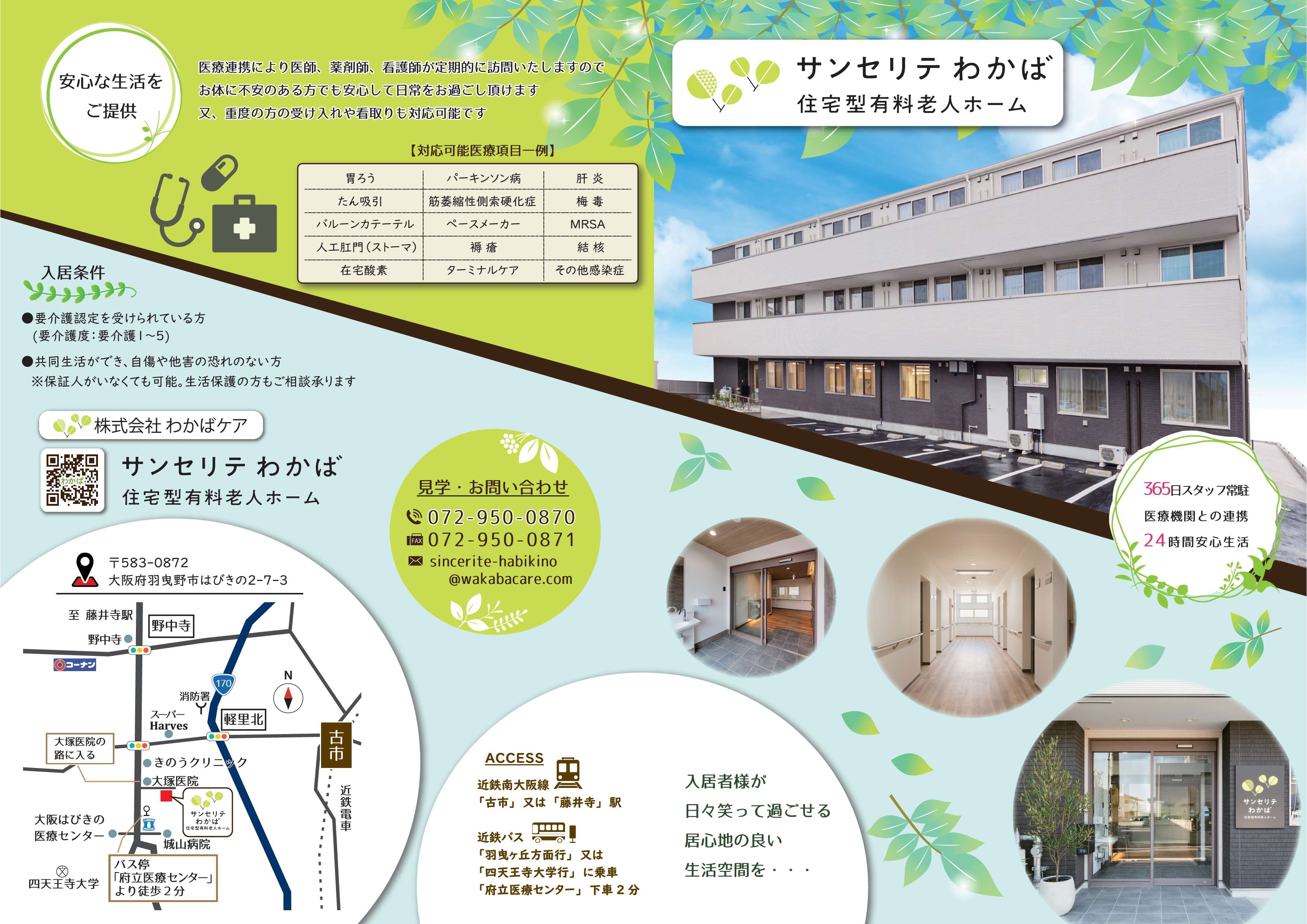 令和6年12月 羽曳野市はびきのにて『住宅型有料老人ホーム サンセリテわかば』を開設いたします。